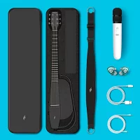 【付属品】NEXGには豊富なアクセサリーが付属しています。ワイヤレスマイクの他に、NEXGで静かに練習するためのHi-Fiモニターイヤホンを同梱しています。ご近所迷惑にならないように配慮しました。USB Type-C 充電ケーブルとTRRS オーディオケーブルも入っています。また、ギターにはレザー調のケースも付属しており、ケースに付いているストラップを「ギターストラップ」としても使えるのが、私達の完全オリジナルです。